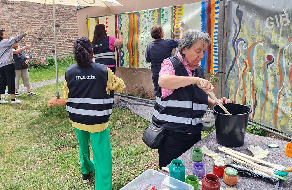 Bei einem offenen Kreativangebot können sich Frauen dem Malen großflächiger Bilder, dem Stoffdruck, Textilarbeiten sowie dem Gestalten von Skulpturen aus Naturmaterialien widmen. Die entstandenen Werke werden anschließend an Bäumen, Zäunen und Fassaden als wechselnde Freiluftgalerie im »YOSEFA Frauengarten« präsentiert. Sie werden zu einem lebendigen Zeichen weiblicher Kreativität im öffentlichen Raum. Auch das gemeinsame Kochen und Speisen steht auf dem Plan.